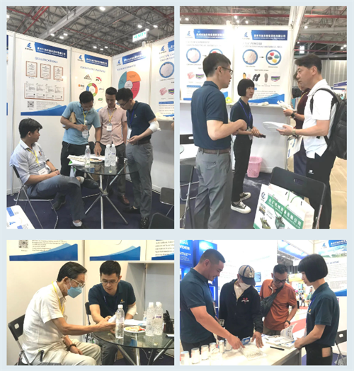 7月2日-7月17日旭豐粉體連續參加了第二十六屆中國(溫州)國際皮革、鞋材、鞋機展覽會、第二十三屆越南國際皮革鞋機展、青島科技大學張振秀博士入園開展前沿鞋材校企對接活動、TPE分會二屆一次會員大會暨第五屆鞋材新技術新產品研討會。
