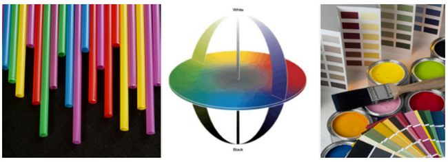 以上為顏填料主要的幾項評價要點,在生活中著色顏料常應用于各式各樣顏色的涂料、油墨、塑料等開發和設計,此時通常會涉及顏色搭配和調色。