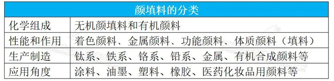 本文為了統一說法,我們將這兩者統稱為顏填料,可以按以下方式對顏填料進行劃分。