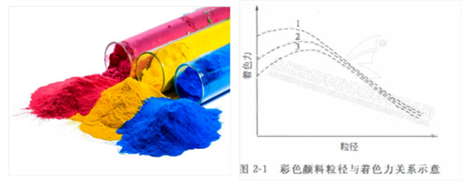 一般顏料著色力越大,著色劑用量越小,著色成本越低;著色力一般隨著顏料的粒徑減小而增加,當粒徑降低到一定程度后,其著色力會因粒徑減小而減少,所以存在著使著色力更強的最佳粒徑。