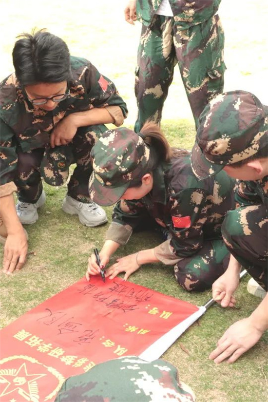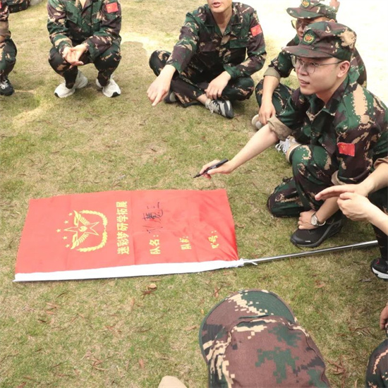 士兵突擊、火速變裝完,軍訓(xùn)的感覺一下就上來了。經(jīng)過簡單的桃花朵朵開環(huán)節(jié)、集合分組、起隊(duì)名、喊口號一系列操作直接讓我們從開始的拘謹(jǐn)變得士氣滿滿,各團(tuán)隊(duì)就此組建完成。