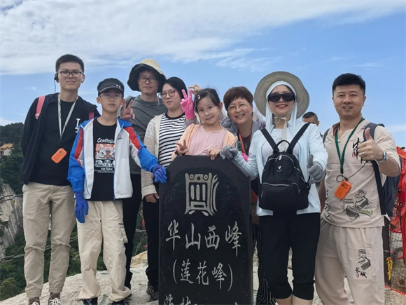 途中,大家或三兩好友結伴同行;或幾人前后跟隨;或駐足留念拍照,一覽華山全貌,不禁學著導游的口音玩笑一句:“這就是額給你們打下的江山啊!”